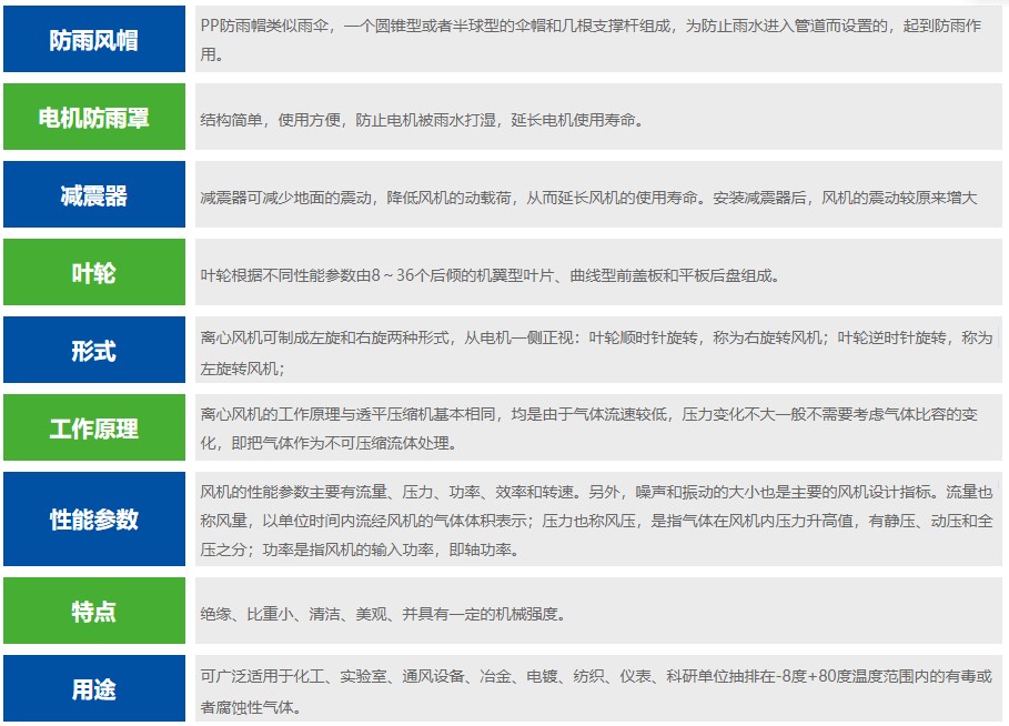 PP風機規(guī)格產(chǎn)品特點 Product characteristics