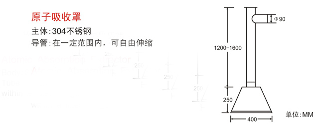 原子集氣罩:采用1.0MM厚不銹鋼板折彎、沖壓而成,安裝用支架固定于屋頂天花上,并和PVC排氣管連接; 導(dǎo)風管下方設(shè)置手動可調(diào)節(jié)風閥,調(diào)節(jié)范圍0-90;出風口為φ158, 本產(chǎn)品需和風機或通風系統(tǒng)配套使用。