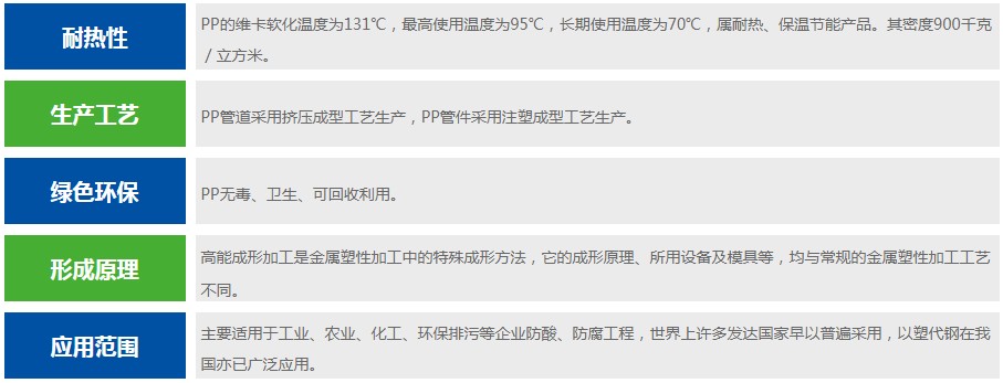生產工藝:PP管道采用擠壓成型工藝生產,PP管件采用注塑成型工藝生產。