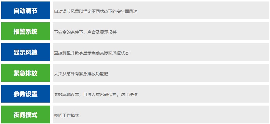 自動調節:自動調節風量以恒定不同狀態下的安全面風速
